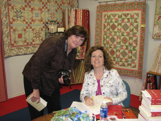……and a NY Times Bestselling one at that! Marie Bostwick has written 6 novels – the first three are historical fiction and the last 3 have a quilting theme. (She apparently had to practice on those first ones to get it right before she took on us quilters. <grin>) I have read the first two in her “Cobbled Court” series and just bought the third one so I could have a signed copy. Now I am ready to find copies of those historical novels and read them too! I love the way Marie develops her characters – she made me care about them and that speaks “good author” to me!