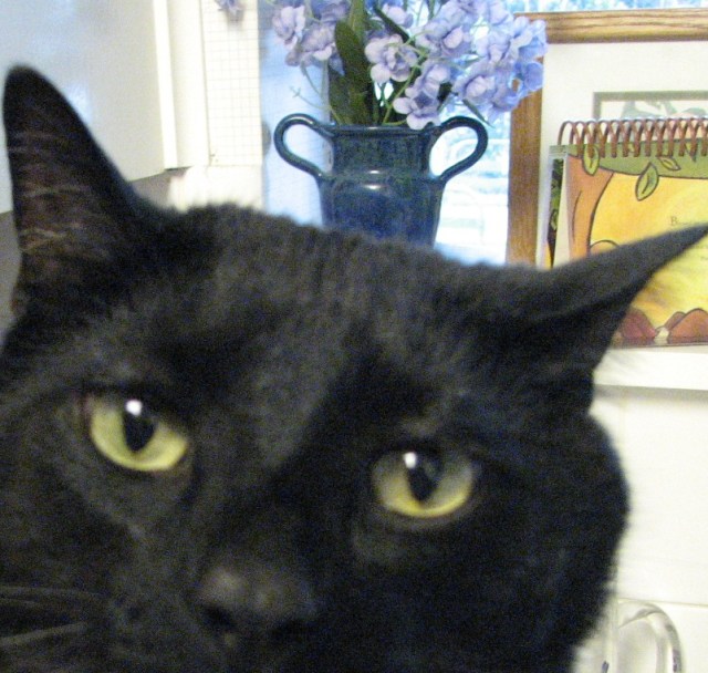 Tap – tap……. is this thing on?  Boo here.  Reporting for Mom today.  She’s sleeping in a little bit.  Up until 5 finishing those quilts just like she promised you!  Well, maybe it was really more like 4:00 that she went to bed.  I had a bit of trouble working the camera to take that pic of me above.  However I chose to use the “auto” setting.  Who needs to fool around with F-stops and shutter speeds at 5:00 in the morning!  And I am a cat, after all.  Holding the camera and pushing the “take a picture” button is about all I can handle.  Thought I’d share with you the outcome of her progress.  Bet you didn’t think she’d get those quilts finished, did ya?  Hey, when she’s on a mission, she’s on a mission!