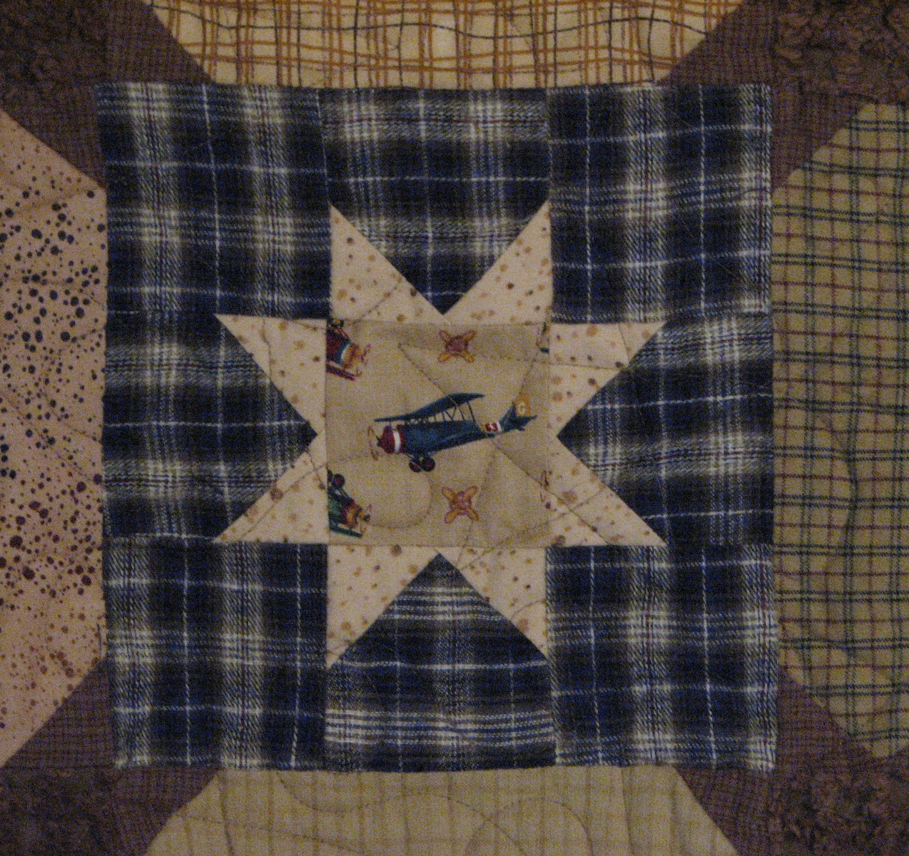 Isn’t the little biplane fabric cute in the middle of the stars?  Susan really wants this quilt….. more than she wants wool even.  I hope she wins.