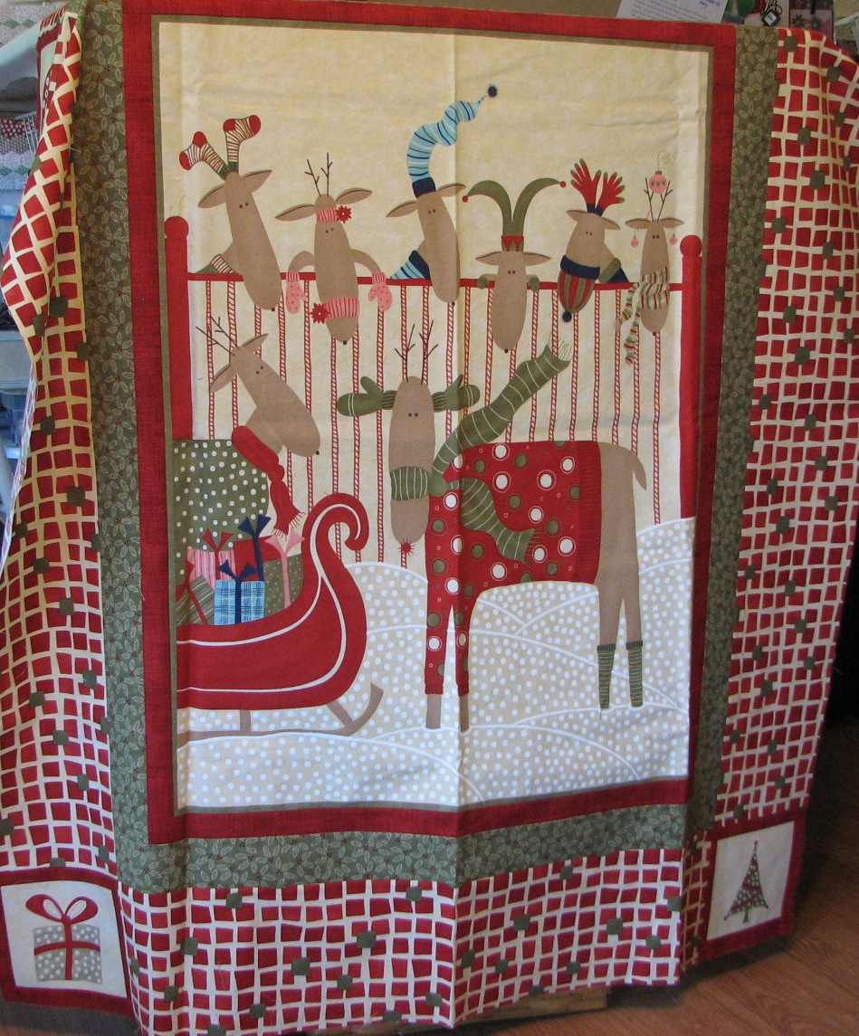 This little UFO is just a preprinted panel to which I added some borders for last July’s Christmas in July at the shop. Yes, that’s July 2009. I know, I know…. it’s almost time for Christmas in July 2010! (That would be July 19-24 at Quilter’s Dream in Colleyville, Texas. Come on by if you’re in the area! Free patterns, refreshments and a nice sale too!) Anyway, this little quilt also needs only quilting and binding to be called done.