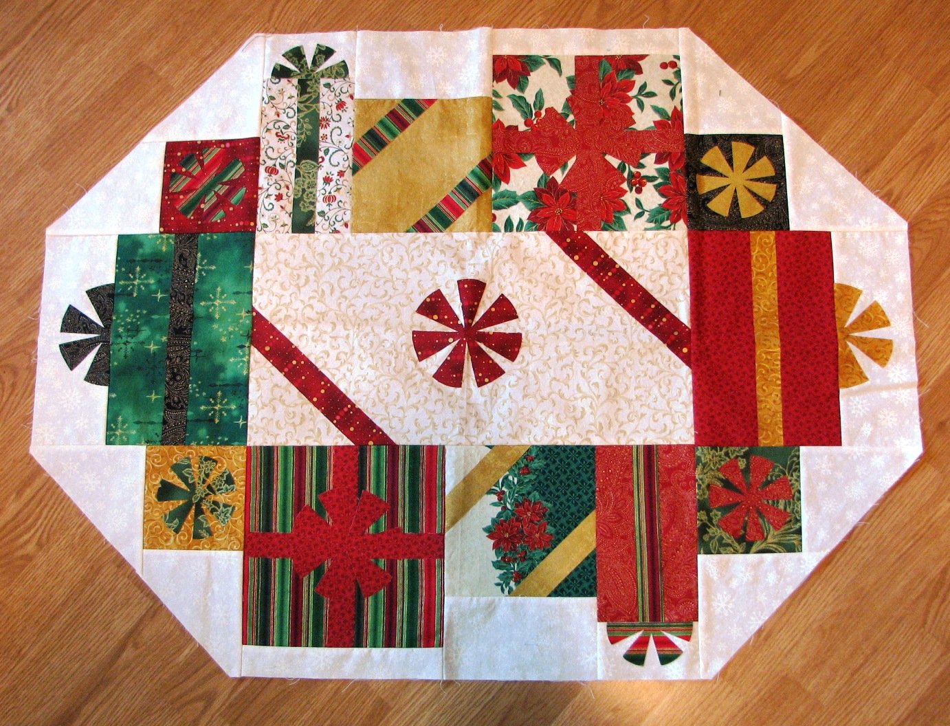 This is a cute little table runner that only needs quilting and binding. I think last year I used it on the table on top of another quilt so you couldn’t tell without looking closely that it wasn’t finished. We Quilters are very creative that way. And I’m sure you’re seeing the pattern here without further explanation needed.