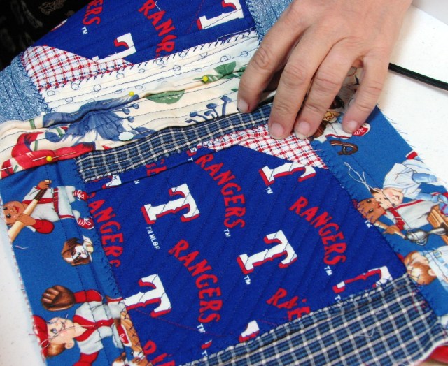 Two gals worked together on this cool baseball quilt. My friend, Suz, is a huge baseball fan. She’s gonna wish she’d have thought of this one and been there for class to get a good start on it. Maybe for a price she can get this gal to give up hers.