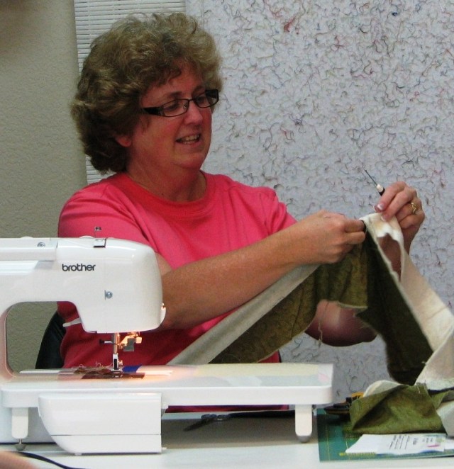 …………………. PAM! Doesn’t she look serious about that sewing? “It’s only a quilt block, Pam! You can do it!”