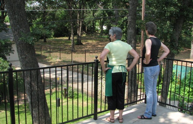 Suzanne got to hear about Pam’s Adventure of Being Locked Out on This Balcony while the house was under construction……. before the railing was installed too – scary! Thank goodness for Good Samaritan neighbor, Brian, who came to her rescue.