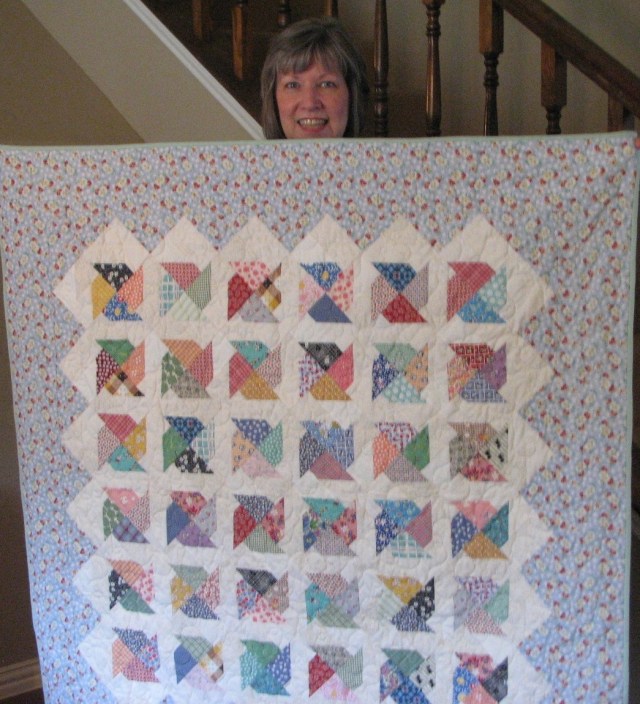 She made two quilts! Apparently she just got them back from her quilter, so they weren’t in the exhibit we did at the Shop. Not to worry…. you get to see them here on the blog!