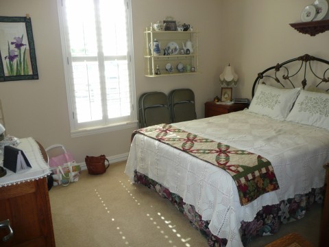 All of the quilts around the house were made by Karen. Isn’t this one on the foot of the bed pretty? And there’s one on the wall there too.