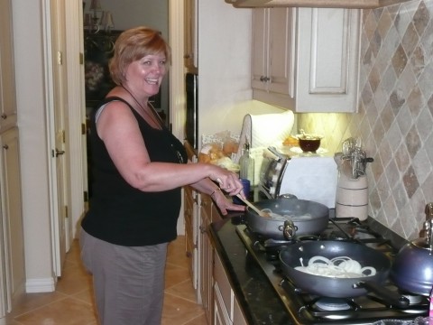 …. and guest chef, Sue! She was busy carmelizing onions.