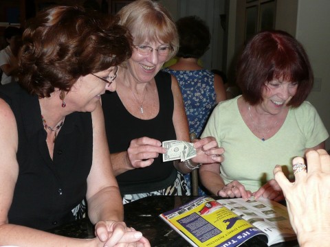 Kay gave origami bird lessons to Jules and Lynn……with a dollar bill? The things these girls do!