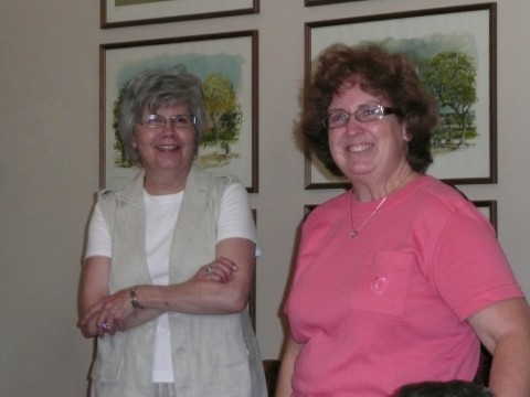 Doesn’t that look scrumptious? With peaches and cream cheese involved, how can you go wrong? I was so busy landing on each person’s plate and taking small bites that I totally missed pics of the bagels and special cream cheese spread too. I’m sure those of you who were not there are really sorry you missed it. I enjoyed every tiny bite! Bet they didn’t even notice me. They were too busy stuffing their faces with all of the food that Karen and Gloria prepared…..