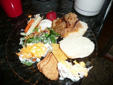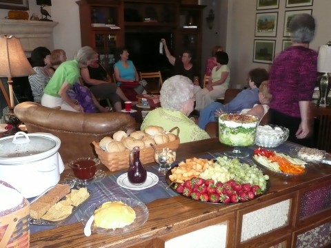 And load up their plates they did! Pulled pork sandwiches, cheese spreads and crackers, tossed salad, fruit salad, layered salad, cucumbers – way too much food. Just like any respectable JSS gathering.