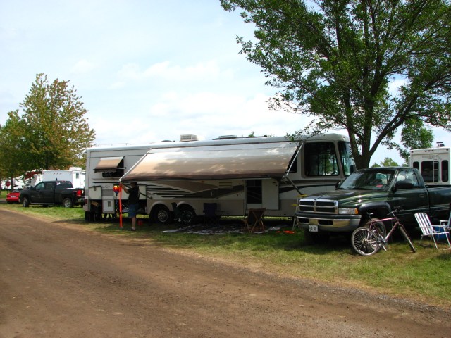 We put out our awning and made it all very homey.  Doesn’t Dear Hubby look comfy in that lawn chair?
