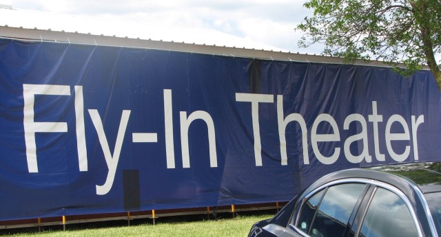 And it was located right near this sign.  You didn’t actually fly into the theater….. more like walked in.  Carrying a lawn chair to sit on.  But all the movies had flying scenes in them.  It wouldn’t be Oshkosh unless it was all about airplanes.