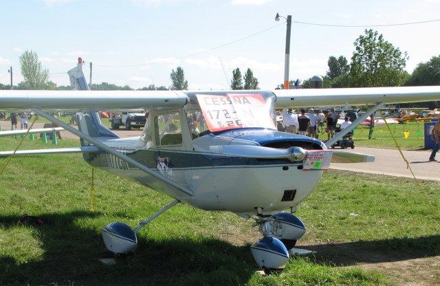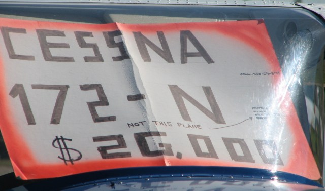 The sign in the window of this airplane is no big deal unless you know airplanes.  Dear Hubby right away said, “Huh?  That’s not a 172.”  (He insisted that my friend, Susan needed to see this sign.)
