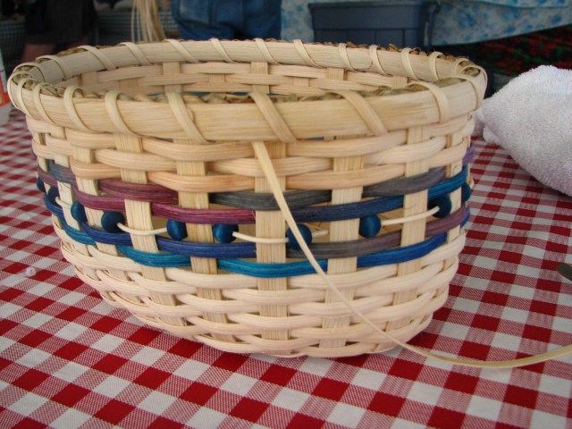 Here’s my personal basket after the first seven rounds of weaving.  It’s taking shape!