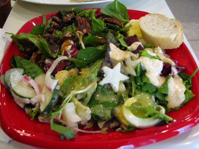 There were four, count them four, different homemade dressings to try. I used them all because I couldn’t decide which one I wanted. I just wasn’t in a decision-making mood.