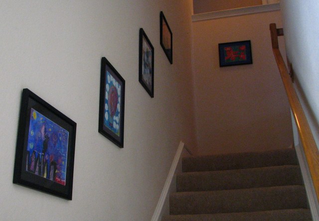 Fabulous, beautiful artwork adorns the stairs that lead to Nancy’s sewing room. You need to see a few of these up close….