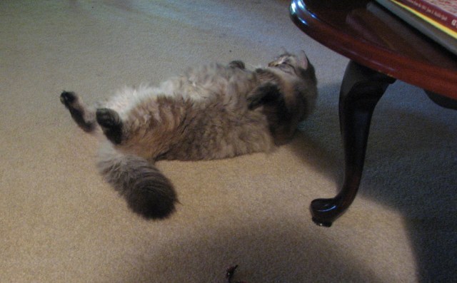 Here she is doing her early morning exercises.  Crunches for Kitties…. 1 and 2 and 1 and 2 and……