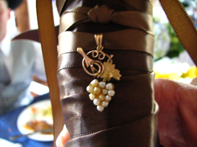 This necklace attached to the ribbon that bound the bridal bouquet together has a fabulous story of being handed down from generation to generation.  Please don’t ask me to remember the whole story.  Ask Karen.  She’d love to tell you all about it!