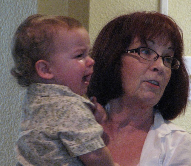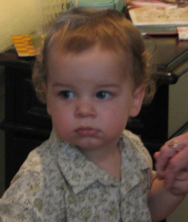 This is how he looked in all the rest of the pics I took of him.  He was not happy with all these women!  Just give him a few years, Kay.  I bet he’ll outgrow it.