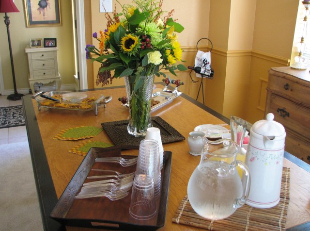This was breakfast.  All set out on the dining room table to greet us as we arrived.  Because we’re all about the eating.  All day, if possible.  And aren’t the flowers gorgeous?