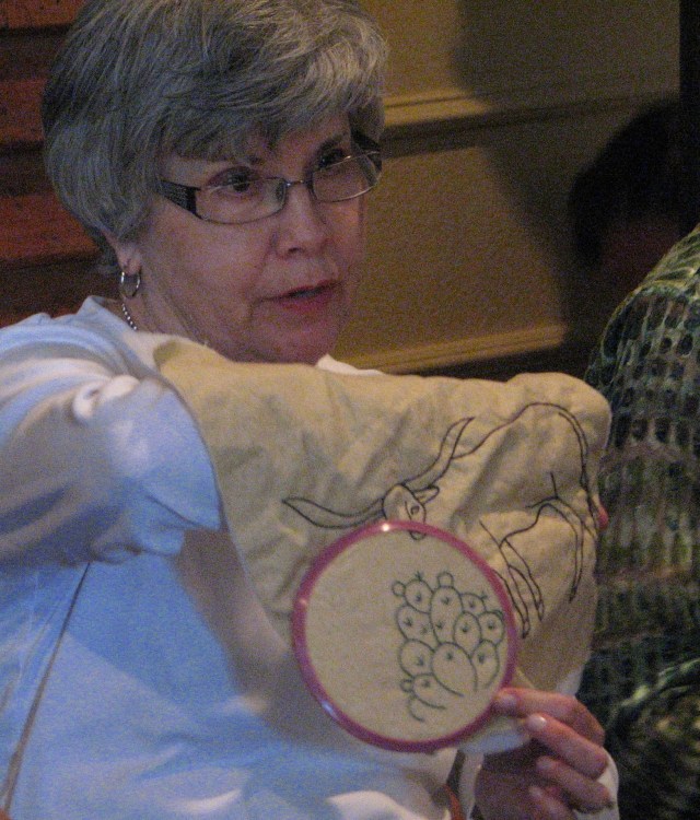 Sue O showed us some great embroidery that she brought along to work on.  Very Texas.