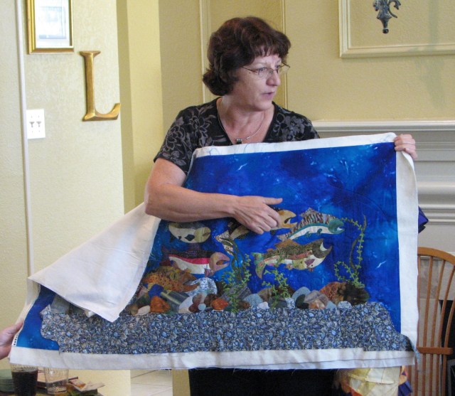 Karen brought the book with the story of the necklace to pass around for her show ‘n tell.  And her boots.  You remember from the most recent post.  We got to hear all the details of the events of her daughter’s wedding.  And we were hanging on every word.  What a fun time Karen had!