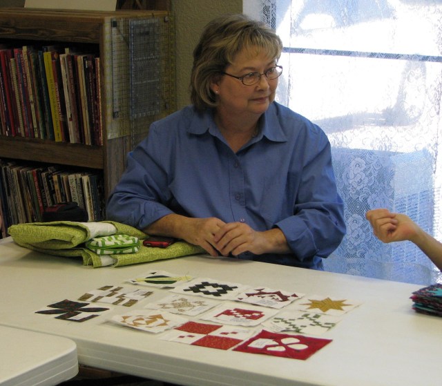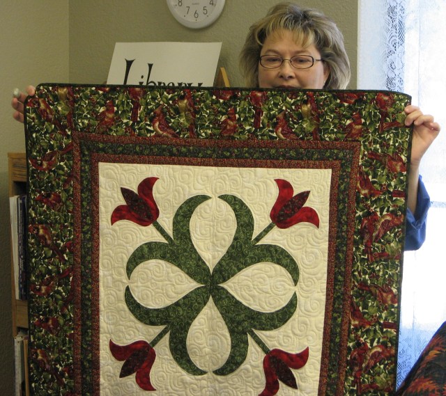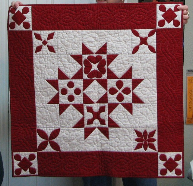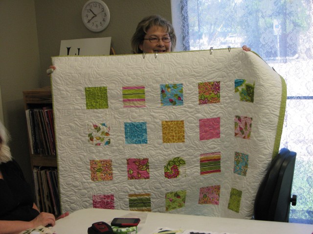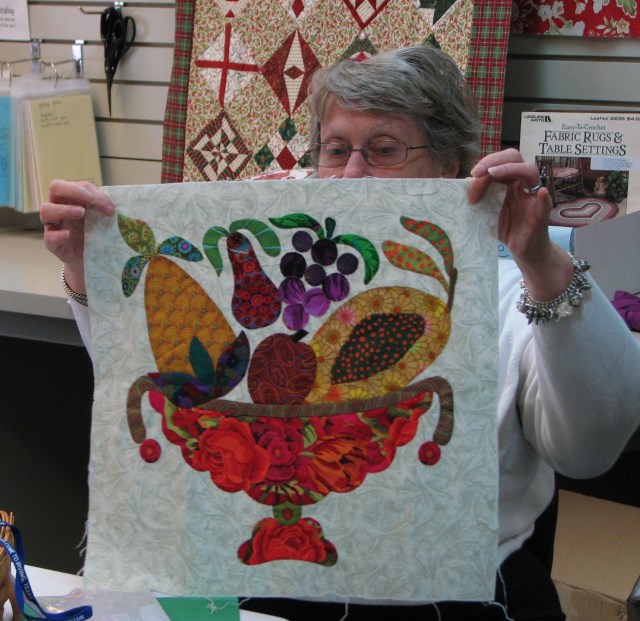 Nice appliqué on this one.  Come back any time, Barbara.  But if she brings that many quilts next time, I’m going to declare her the teacher.