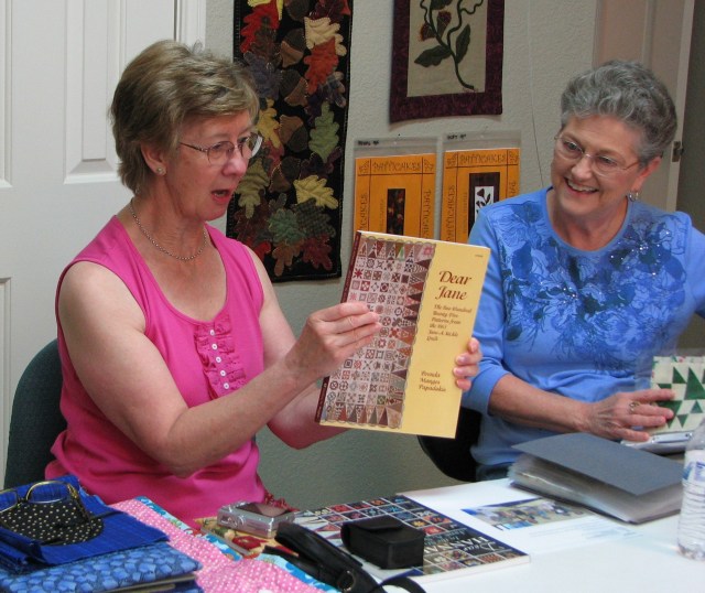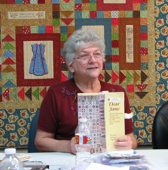 Meet Brenda Papadakis – the author of Dear Jane!  There is no way I can tell you how much fun she is.  She shared so many hysterical stories with us that our sides were splitting with laughter.  Now that’s some laughter when it causes your sides to split.  I wish I could relay them all to you, but I couldn’t do them justice.  We just need to have Brenda come back and share them again so more people can be there.  And actually that might be in the works!  A retreat with Brenda – in January if we can work out the schedule.  So if you’re reading this and are interested, please leave a comment and I’ll get in touch with you about the details!