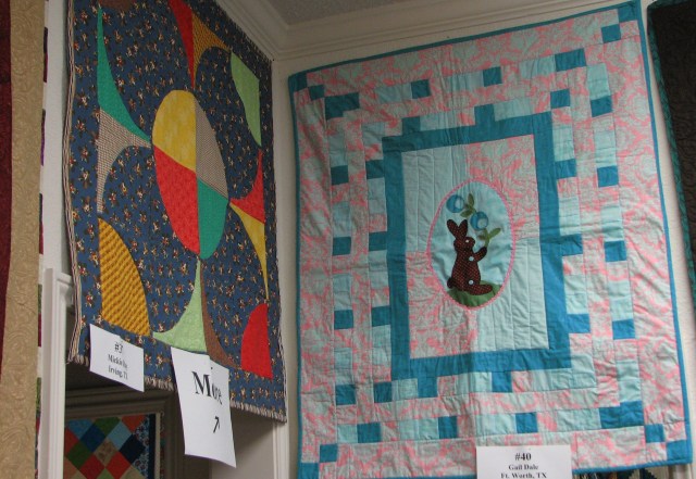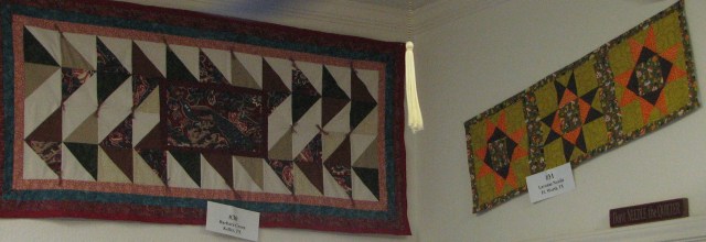 Two table runners. The gal on the right was so proud to have a completed project to submit. It was a stretch for her as a newbie quilter! Good job! We love to help newbie quilters at our shop.
