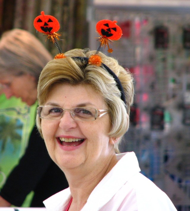 Newbie Linda fits right in.  And her Secret Sis gave her this fabulous seasonal tiara.  So her Secret Sis gets a big shout out for a great secret gift!  Newbie Linda wears it proudly.