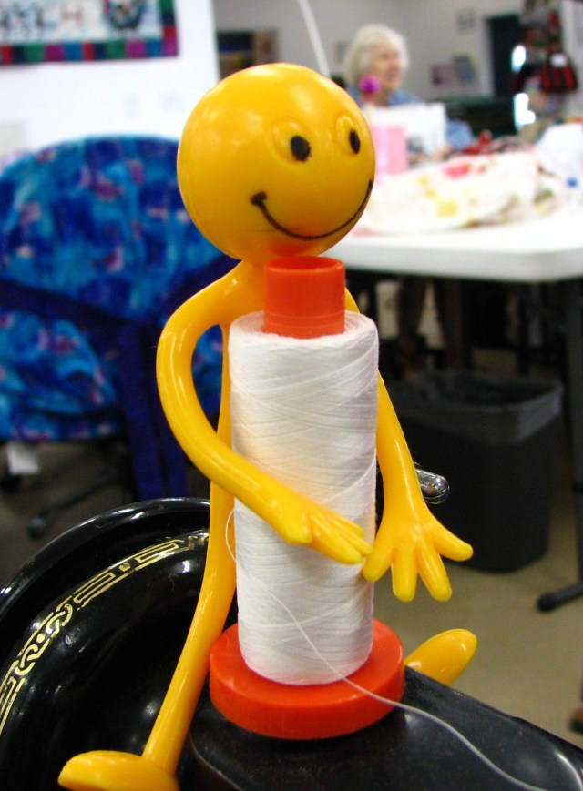 I mean really. What in the world is this guy doing at a quilting retreat?