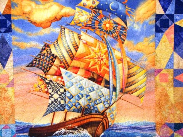 Aren’t the sails spectacular? Little flying geese and other intricate piecing. Fabulous.