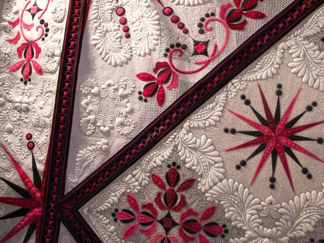 Who is brave enough to quilt with black thread on a white background? Apparently someone trying to win a $10,000 prize. And this one claimed the big prize this year.