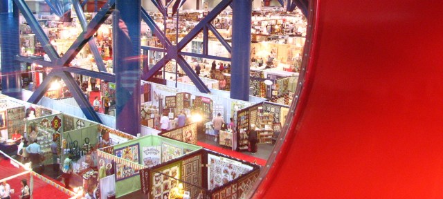 For those of you who might never have been to the Houston Market or Quilt Festival, this is the view from the second floor. Looking down over all the vendor booths. And this is probably only about 1/10 of the size of it. Row after row after row after row after row. You could walk your feet right off. Or walk blisters right in. It’s a lot of walking!