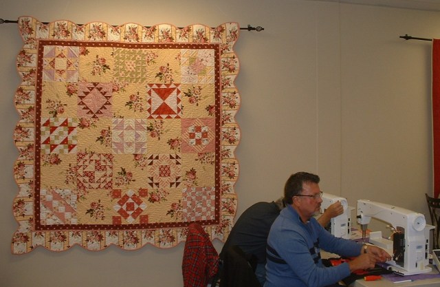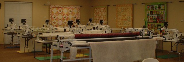 Look at all those machines. Ready and waiting for quilting lessons. I bet Pam was itching to get her hands on one.