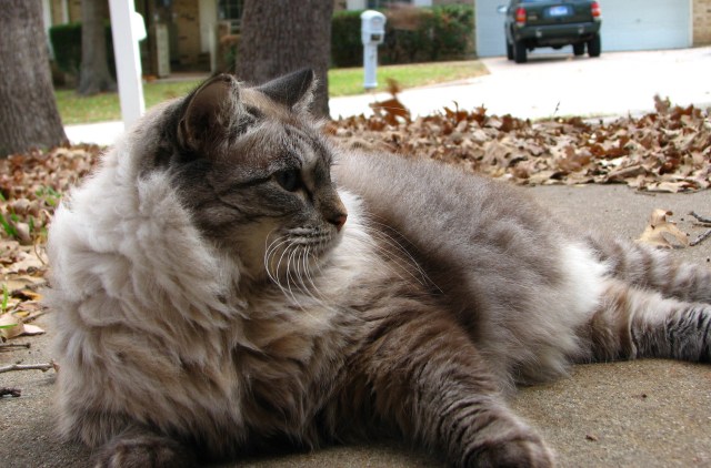 Miss Kitty enjoys a walk in the driveway on the pretty Fall day. It was quite blustery yesterday and she enjoyed chasing the leaves around the driveway.