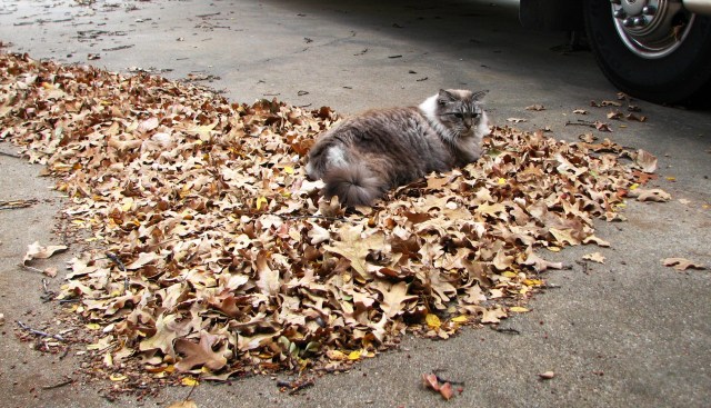 Miss Kitty doesn’t care what color they are. She just wants to jump in the pile. And chase the blowing ones.