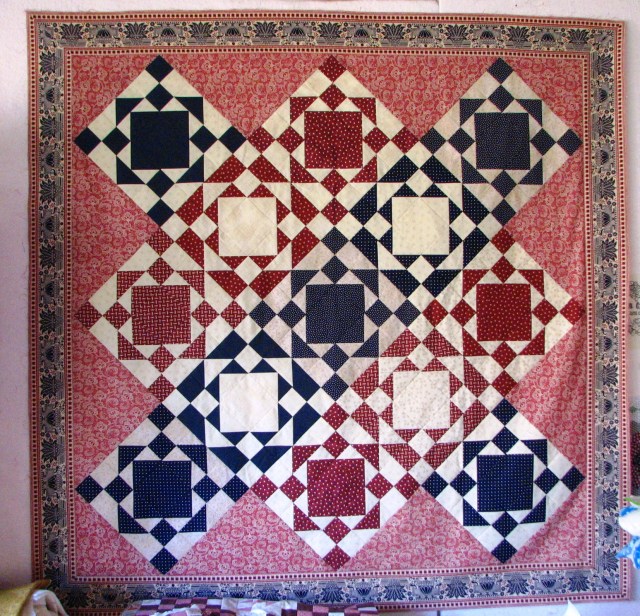 So, Sarah, here’s the news: your quilt top was really, really, really pretty. I know because the person who made it really wanted to keep it. And a few others wanted to take it home too. It looked really nice with the fabric you put in the brown bag. And yes, that was a good border print and the person who made it only used it in the border.