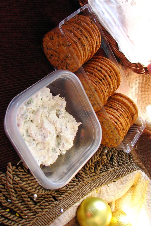 She actually spreads this stuff on bread and then bakes it so the cheese melts over the bread.  But halfway through the recipe she tells you how great it is as a cracker spread.  And that’s the part that will make you laugh out loud.  Promise.  You can kick me if you read it and don’t laugh or, at the very least, smile real big.  Really.