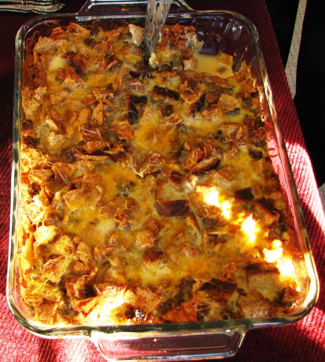 This is one of those breakfast casserole things.  With eggs and sausage and lots of other goodies.  A salty delight to cut all the sweet from Karen’s dish.  And do not ask me who made it.