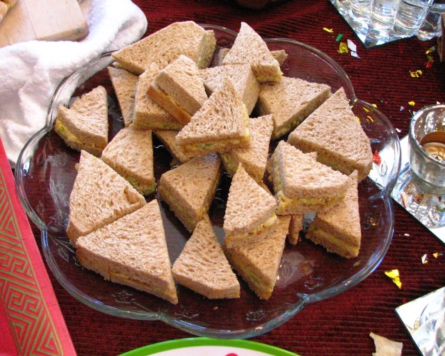 Cucumber sandwiches.  I love these.  I’m sure there is cream cheese involved.