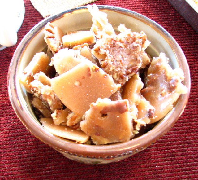 Yum.  Brittle.  I was going to say peanut brittle, but I’m not sure it’s peanuts in this one.  And it’s just the thing to round out breakfast, don’t you think?