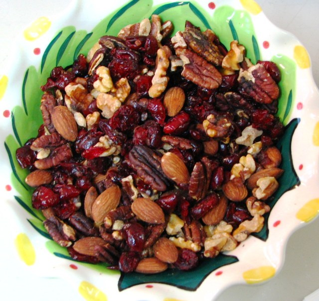 Yummy snackin’ stuff with cranberries and nuts.
