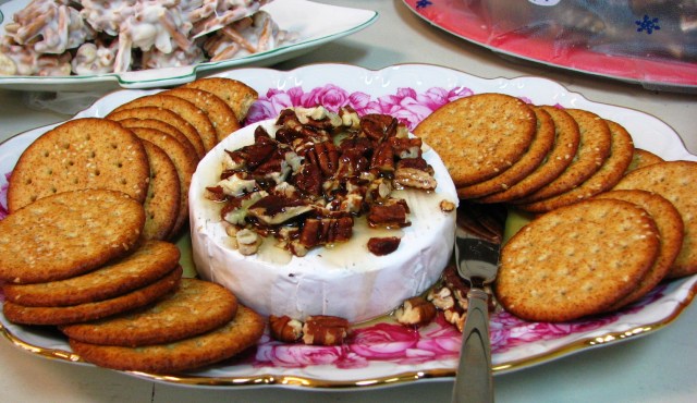 Cream cheese with pecans and honey on crackers. Because anything with cream cheese is very yummy in my opinion.