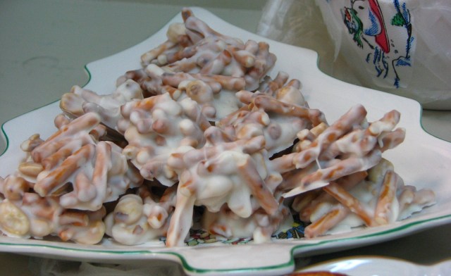 Haystack thingies with white chocolate and crunch. Double yum.