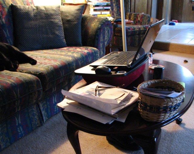 My piles are pretty bad too! Unfortunately, I have to get everything picked up this week (people coming over). My table looks pretty much like yours. 🙂