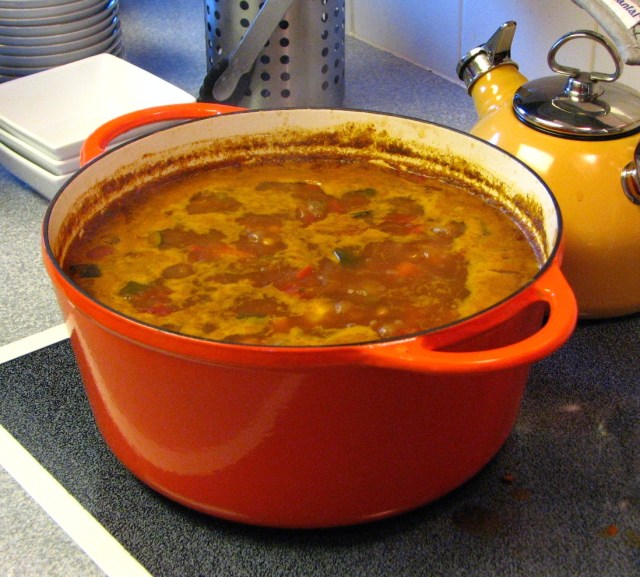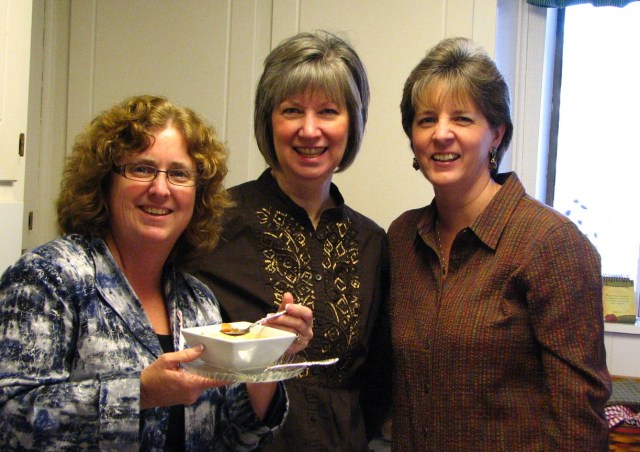 Karen snuck into the kitchen for a quick bowl of soup because she needed to leave early. And got caught by my camera in the hands of Susan. You can’t sneak anything by Susan!