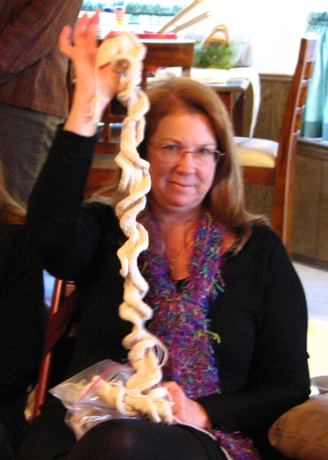 Speaking of Susan, here she is! So I guess she didn’t take this picture, now did she? This is Susan, banging the cast iron skillet with a potato masher to get everyone’s attention. Everyone had been there… oh, about 30 seconds…. when she decided that we needed to get the show on the road and begin Show ‘n Tell. OK, maybe they had been there closer to an hour, but I felt the need to give Susan a hard time.