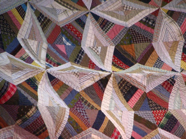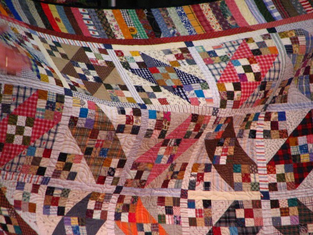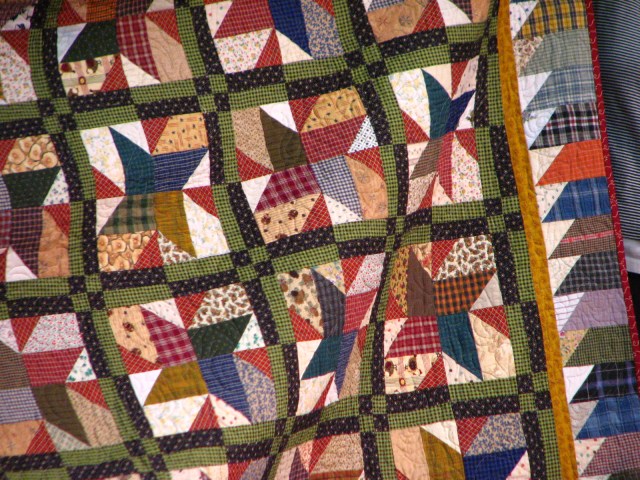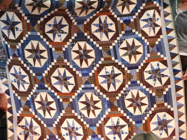 The center of this quilt was made entirely of recycled items.  Shirts and such.  Very cool.  Now I not only have to cut up my entire stash, but I also have to raid Dear Hubby’s closet for old shirts.  I’m going to be in such trouble.