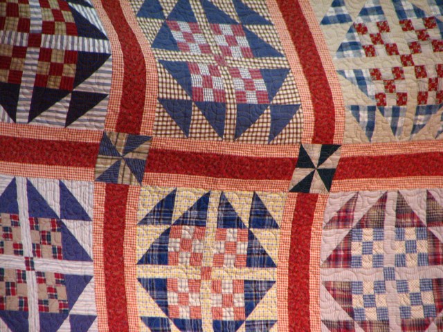 I love plaids too.  Seems me and Bonnie could be great friends in the quilting world.  We like the same things!  Simple, traditional, pieced quilts and very scrappy.  How about an up-close look at this one too?